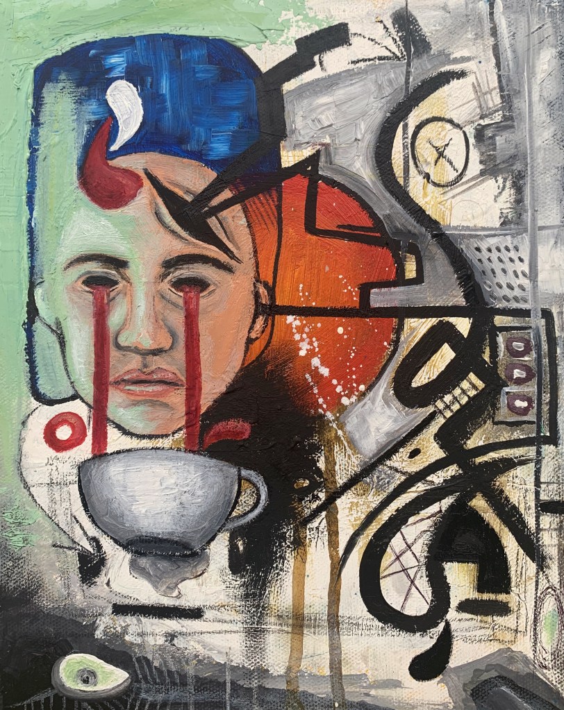 Mixed Media; Oil, Acrylic, and Charcoal on Stretched Canvas, 10″ x 8″, 2020